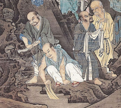 | Des arhats lavant leur linge, en attendant Maitreya (1178), détail, Lin Tinggui |